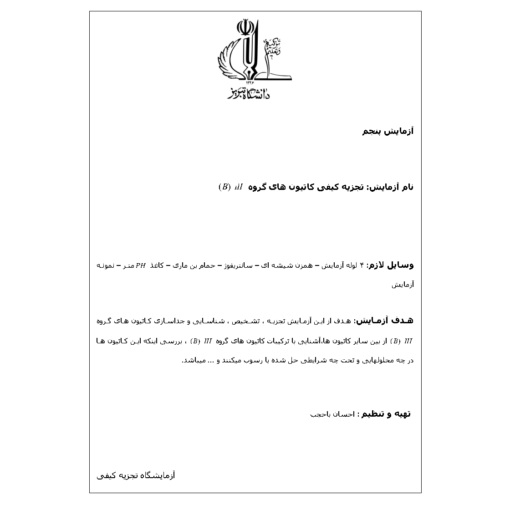 جزوه آزمایشگاه شیمی عمومی ۲ تجزیه کیفی و شناسایی کاتیون های گروه (III B)